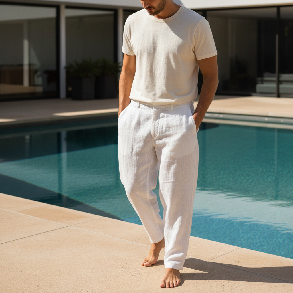 Comfortable casual trousers with a relaxed fit. Lightweight cotton fabric ensures breathability and ease of movement, perfect for daily wear or weekend outings.