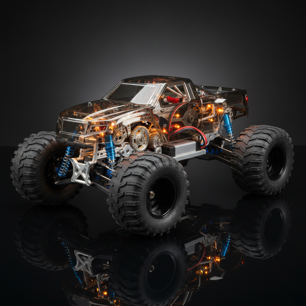 Rugged RC monster truck with large wheels and powerful performance. Ideal for rough surfaces and adventurous play, ensuring durability and excitement.