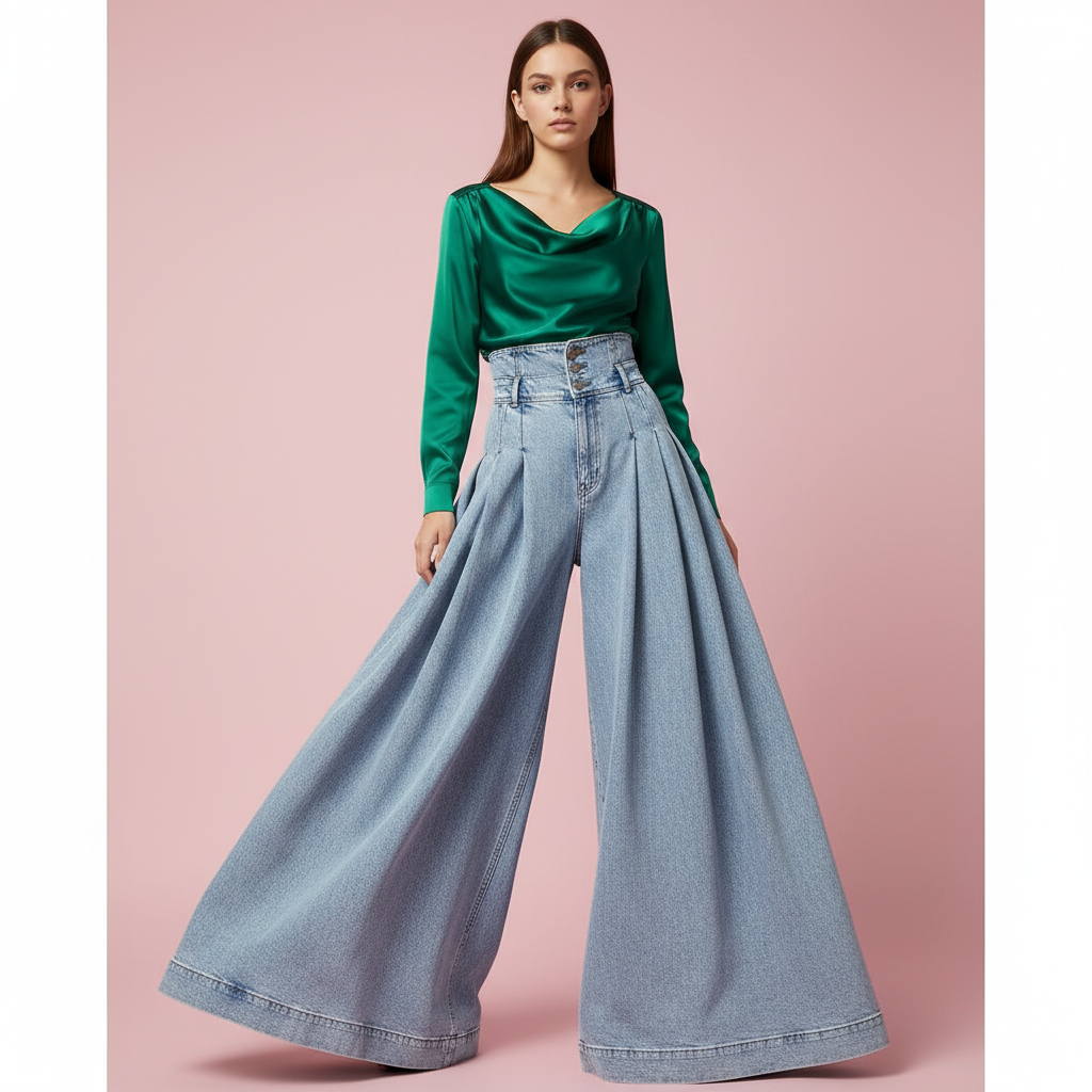 - Wide leg silhouette with dramatic flow