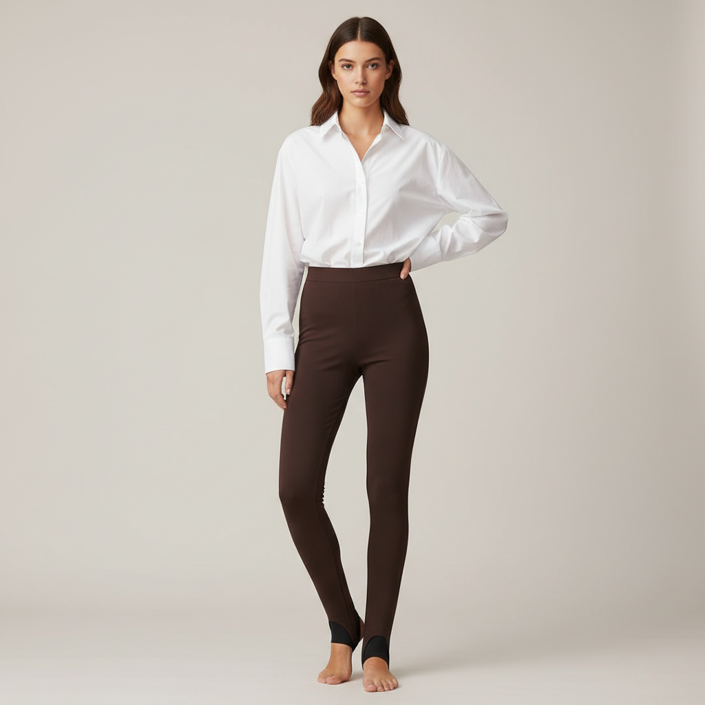 Upgrade your everyday essentials with these brown high waist stretch leggings, designed for both comfort and style. Crafted from a soft, flexible fabric, these leggings provide a snug fit that moves with you. The high-rise waistband offers support and a flattering silhouette, making them perfect for casual wear, office layering, or light workouts.
