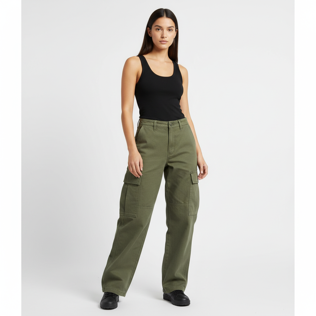 Utility Style Olive Green Cargo Trousers with Relaxed Fit
