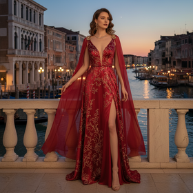 Step into timeless glamour with our Elegant Sleeveless Embroidered Red Gown with Sheer Overlay and Deep V-Neck Design. Crafted to make a bold statement, this gown features intricate embroidery that enhances its luxurious appeal. The flowing sheer overlay adds grace and movement, while the deep V-neckline brings a touch of modern sophistication. Designed for elegance and comfort, this gown is perfect for evening events, receptions, or special occasions. Pair it with statement heels and minimal accessories for a stunning, head-turning look.