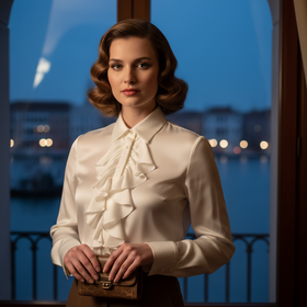 Elevate your wardrobe with this Elegant Satin Ruffle Front Blouse, designed to offer a refined and sophisticated look. Featuring a classic collar and cascading ruffle detailing, this blouse adds a touch of timeless elegance. The smooth satin fabric provides a soft and luxurious feel, ensuring all-day comfort. Perfect for both formal and semi-formal occasions, it pairs effortlessly with skirts or tailored trousers. A stylish and versatile piece for modern fashion.